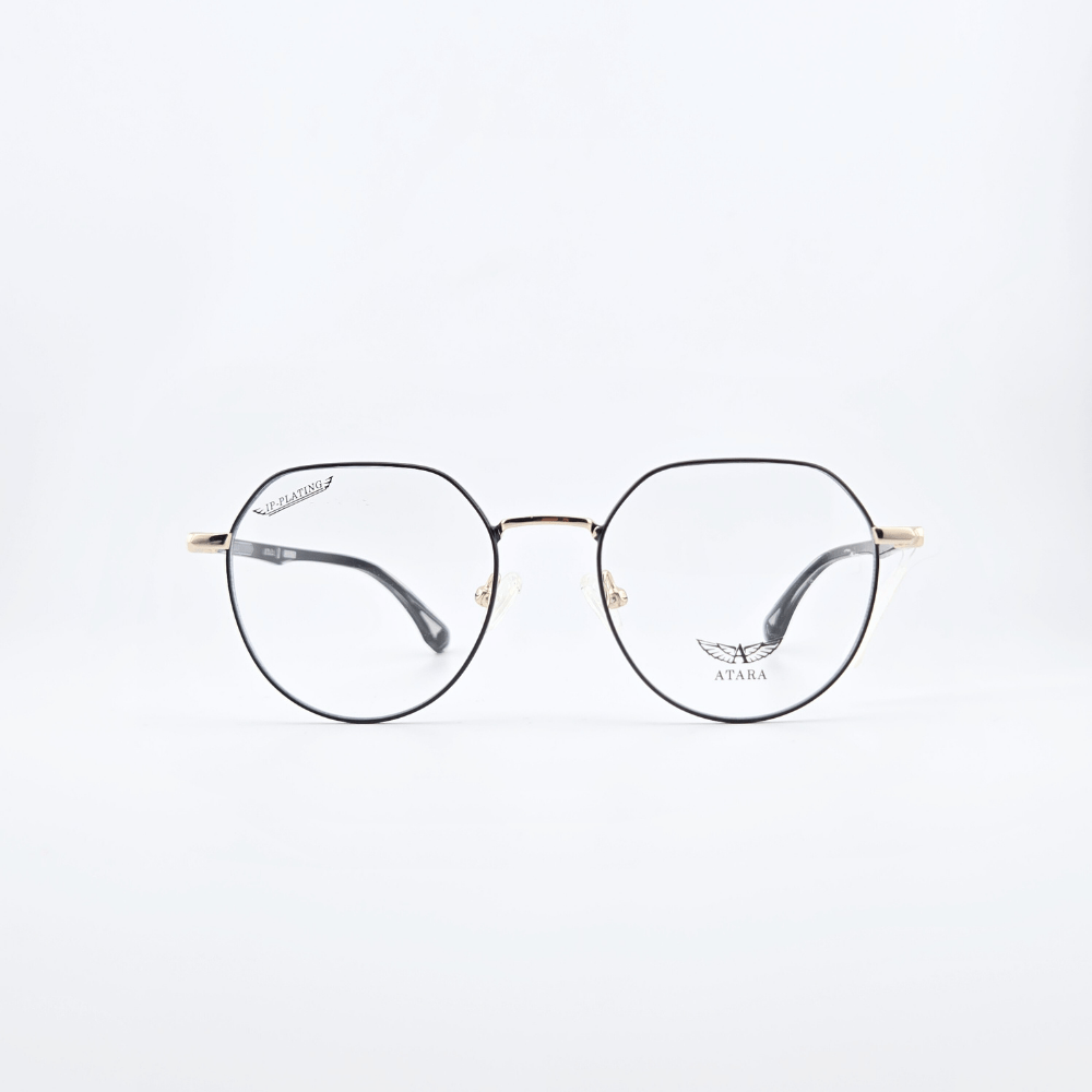 عینک طبی ATARA مدل AeroLine با طراحی دایرهای-چندضلعی و ترکیب رنگ مشکی طلایی، یکی از خاصترین فریمهای سبکوزن برند آتارا است. این مدل از فولاستیل ضدحساسیت با آبکاری IP-Plating ساخته شده که علاوه بر دوام بالا، در برابر زنگزدگی و تغییر رنگ نیز مقاوم است.