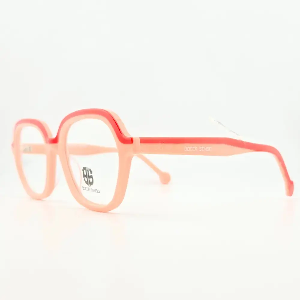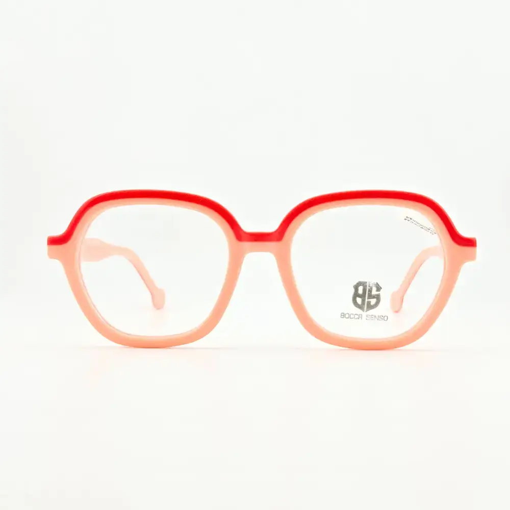 رنگ جذاب هلویی عینک طبی بوکاسنسو به استایل های مدرن و فانتزی زندگی می بخشد و به راحتی با لباس های مختلف ترکیب می شود.
